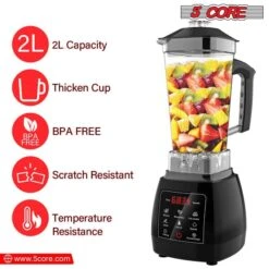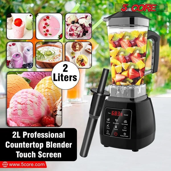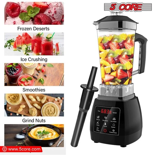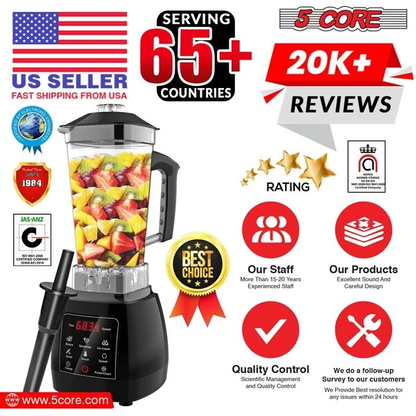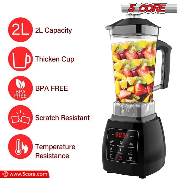 5 Core is a trusted brand across 56 different countries As a professional manufacturer of small appliances, we are committed to building best products that add convenience, and enhanced experiences to our valued customers. With a dedication to quality and service, we continue to push for excellence in the industry. 5 Core provide high quality professional blender, let you enjoy the homemade food with your family. The blender will make a huge impact in your kitchen, and more importantly, your health. High Power commercial blender: This professional blender has 2200 watt motor . Timing Function: Pre-set the time, no need wait for it during working. Boost Power: One-touch pulse buttons will give blender get extra boost power and let you quickly get your favorite smoothies Safe and Durable: The countertop blender jar are BPA free . High-temperature protection and anti-break.
