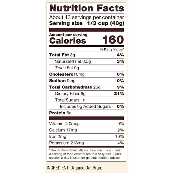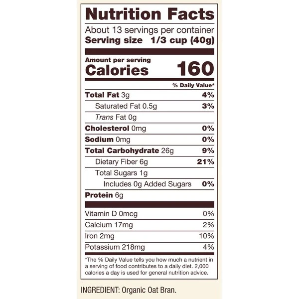Bob’s Red Mill Organic Oat Bran 18 oz. Bag