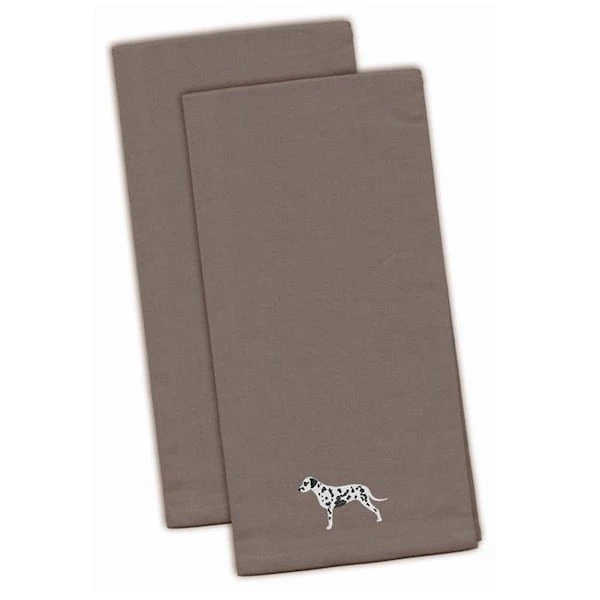 A set of Two Kitchen Towels that are 100 percent cotton. Each towel measures 19 inches by 28 inches. Each towel features an embroidered design. Machine was cold and dry with low heat. Always use a pressing cloth when pressing the design.
