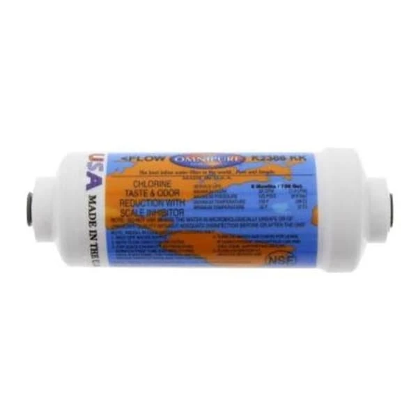 FeaturesThis Water Filter can be used in icemakers. refrigerators. beverage equipment. drinking fountains. under the counter systems. RO Systems and in conjunction with purification systems.This and Phosphate water filter consists of granular activated carbon used to reduce taste. odor and chlorine taste and odor along with a polyphosphate scale inhibitor.3/8 in. quick-connect compression fittingsGranular activated carbon with phosphate to inhibit scale. and reduce chlorine taste and odor as well as other contaminants5 micron filter0.5 GPM flow rate