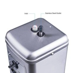 The Ready Hot 41-RH-150-F570-BN Compact Instant Hot Water Dispenser with Brushed Nickel Hot Water Faucet delivers space-saving convenience under your sink and up to 200F water at your fingertips with no waste and no need for microwaving or stovetop boiling. Featuring a compact stainless steel tank and brushed nickel hot water faucet, this under sink large hot water dispenser helps save space under your sink and offers quick connect fittings and convenient connections to reduce the probability of kinked or twisted water lines. The manual temperature control knob conveniently allows you to adjust the temperature between 140F and 208F for hot water that fits your needs. The 2.5-quart stainless steel dispenser tank comes with a 120-volt 1300-watt stainless steel heating element for efficient heating and consistent temperature control that’s both durable and reliable. For added safety, an automated heater protection thermal fuse protects the dispenser in the event of a dry start up. The near-boiling water makes beverage and instant foods in seconds including tea, coffee, cocoa, soups, noodles, pasta, and vegetables. In addition, the hot water maker may be used for many other household tasks, such as a baby hot water dispenser for food & bottles or cleaning pots & pans. For the highest quality water, the non-copper waterways of this instant hot water tank make it ideally suited for reverse osmosis applications very low in total dissolved solids (TDS). The Ready Hot water tank includes an inlet connector 3/8” NPSM X 1/4” push fit (blue position), tank, brushed nickel hot water faucet, 1/4” or 3/8” hose clamp, and outlet connector— 3/8” NPSM brass plated barb connector (red position). The Ready Hot 41-RH-150-F570-BN Instant Hot Water Dispenser comes with a 3-year warranty.