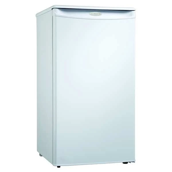 Mini Refrigerator with Freezer Section, Refrigerator Style Mini, Total Capacity 3.2 cu ft, Refrigerator Capacity 2.6 cu ft, Freezer Capacity 0.3 cu ft, Overall Height 32 3/4 in, Overall Width 17 3/4 in, Overall Depth 18 1/2 in, Color White, Energy Star Compliant Yes, Number of Shelves 3, Defrost Semi-Automatic, Number of Doors 1, Includes Freezer Yes, Control Type Mechanical, Cord Length 5 ft, Current 15 A, Door Hinge Swing, Door Style Solid, Door Swing Reversible