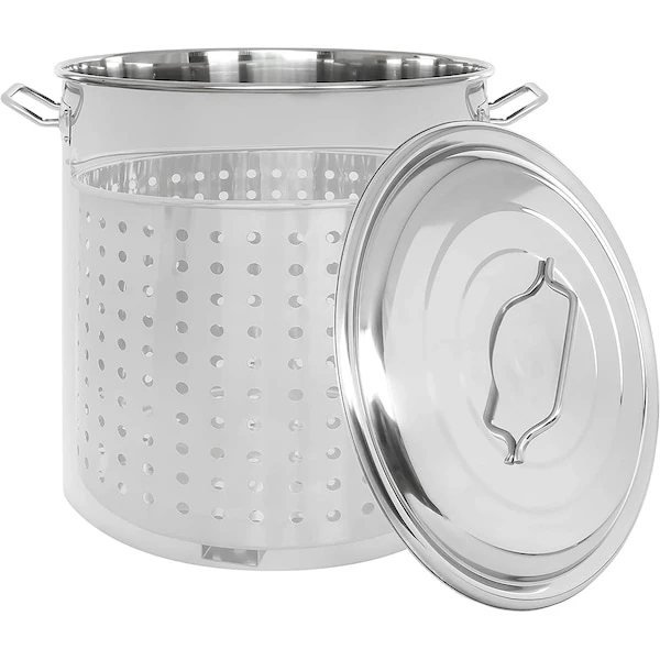 40 Quart Size: 14″ Width x 15.5″ Height. Basket Size: 12″ Width x 12″ Height. Set includes Stock Pot, Lid, and Basket.