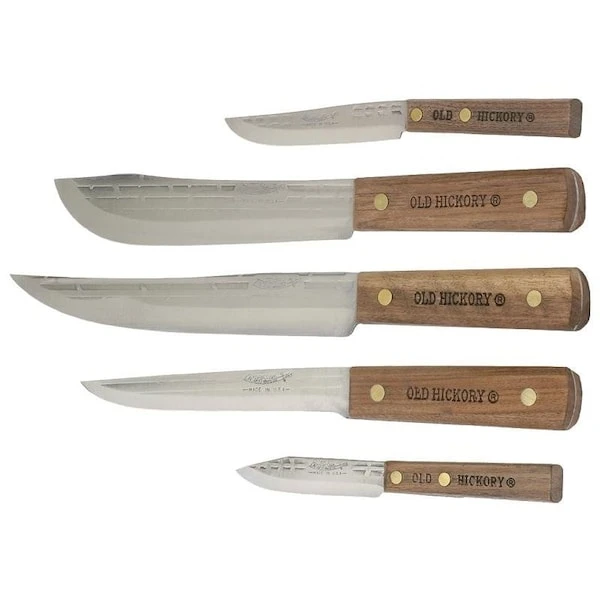 First introduced in 1924, the OLD HICKORY knives are the most venerable product line still in active production The OLD HICKORY knives feature a hardwood handle secured with brass compression rivets to 1095 carbon steel blades that are both very sharp and capable of retaining an edge better than most stainless knives Proudly manufactured with artisan processes for over 90 years, OLD HICKORY has stood the test of time and is proven to be the ideal carbon steel kitchen cutlery sold today