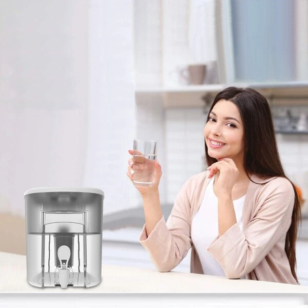 Drink healthier, great-tasting water with this BPA free Drinkpod Water Dispenser. The Drinkpod Alkaline Water Dispenser is designed to purify and naturally ionize your tap water, giving it refreshing and crisp taste. The extra large capacity makes this water filtration system perfect for busy families, sports teams and offices, while a new, sleek, space efficient design allows for convenient storage. A flip top lid makes refilling a breeze. This filtered water dispenser comes with 3 water filters and delivers great tasting water in every pour. The Drinkpod Alkaline Water Dispenser balances your pH level and boosts alkalinity while removing harmful contaminants and making your water antioxidant-rich. Stay healthy & hydrated with clean and delicious alkaline water.