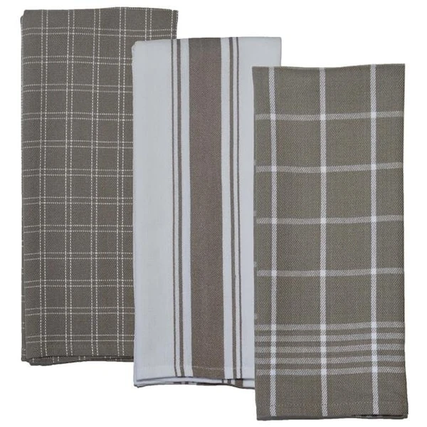 A 100% cotton taupe and white tea towel that is perfect for a variety of uses. These towels are durable, colorful, and practical. Great for kitchen use, these towels will not disappoint.
