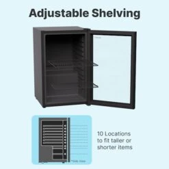 Keep your drinks nicely chilled and accessible in your indoor entertaining area with the stylish Husky 90L Single Glass Door Under Counter Bar Fridge. It features fully adjustable chrome wire racks for a sleek and modern look. The mechanical temperature control helps to keep your drinks chilled to the desired temperature.