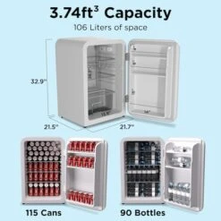 This classic retro-styled compact bar fridge offers a stunning vintage look to brighten up any bar, kitchen, garage, or living space and add a little bit of retro charm. It comes in a convenient 106L mini-size, ideal for placement on top of bench-tops while still offering plenty of space to keep your drinks chilled to perfection on that hot summer’s day. This mini-fridge comes with in-door storage and a coated shelf, providing plenty of storage within the fridge despite its compact size.