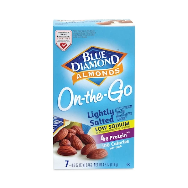 Almonds are a great source of protein, and a healthier choice than most snacks Now, with low sodium, Blue Diamonds Low Sodium Lightly Salted Almonds are an even better snack to reach for when your midday hunger sets in Fill your office breakroom, with these nutritious and delicious nuts