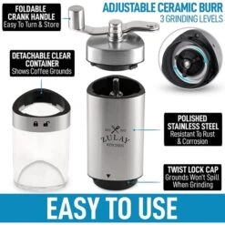 Manual Coffee GrinderIf you’re the type of person who takes coffee seriously, then our Zulay Kitchen Manual Coffee Grinder is perfect for you Achieving that delicious cup of brewed coffee in the comfort of your home has never been easier Made with BPA