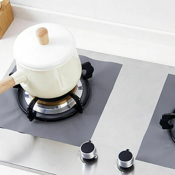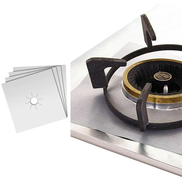 Made from Teflon coated glass fiber cloth, excellent anti-adhesive, you can easily remove surface grease, stains, etc., can be used repeatedly.Can be trimmed to fit different gas stoves. The hole of protector must be trimmed with scissors to fit your gas stove properly before use.Fits virtually all gas hobs and is non-stick.Strong heat-resistant properly, up to 380.Can easily be removed when cleaning.Can be safely used in the dishwasher, non-toxic and a preservative function.Features & details:Material: Teflon coated fiberglass clothSize: 10.63 x 10.63 inchThe range of heat resistance: -70 to 260 the highest could be 380