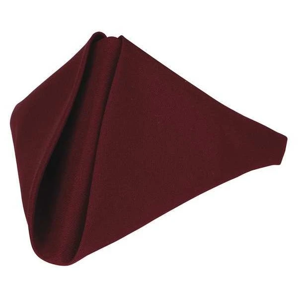 Napkin, Machine Washable No, Pattern Solid, Shape Square, Product Type Napkin, Color Burgundy, Diameter Not Applicable, Material Polyester, Overall Length 20 in, Overall Width 20 in, Package Quantity 12