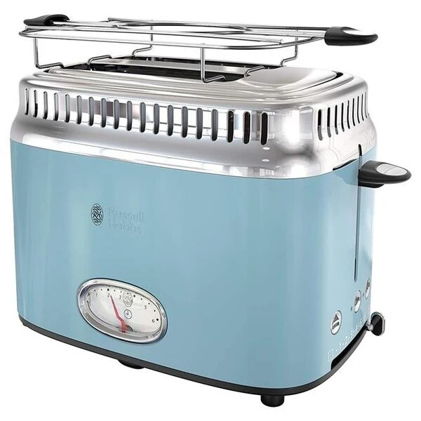Classic retro-styling meets modern innovation for premium toasting performance. This 2-slice toaster features a countdown timer that shows precisely how much time remains on the toasting cycle. The variable browning control ranges from 1 (light) to 6 (dark) to satisfy all preferences. Choose the Bagel function for a perfectly toasted cut side with a warmed bottom side or the Frozen setting for fresh-like results. This toaster comes with a removable warming rack that quickly heats buns, pastries, and rolls. Plus, the removable crumb tray ensures easy cleanup.