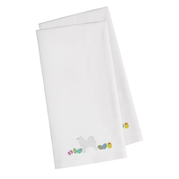 Samoyed Easter White Embroidered Kitchen Towel