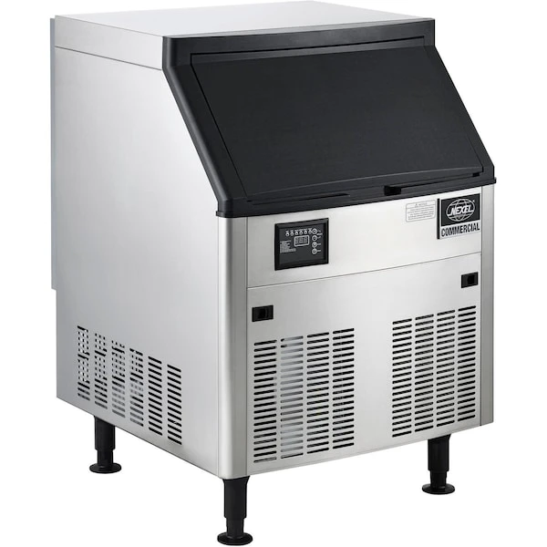 Under counter ice maker produces up to 160 lbs. of ice per day. Self-contained ice bin has a 80 lb. ice capacity with automatic overflow prevention. Easy to use control panel for intuitive operation. Stainless steel construction with durable plastic bin door. Ice maker produces high quality, crystal-clear full cube style ice. Unit includes ice scoop, water filter and drain hose. Front access panel for quick maintenance checks. Adjustable legs to accommodate for uneven flooring. Suitable for freestanding or built-in applications and is and ETL approved for commercial use.