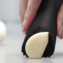 A quick way to peel whole garlic cloves.No garlic odor left on hands or countertopThe flexible, easy-to-roll rubber material5 inches long, wide enough for large or small clovescleverly designed multi-function garlic tool for crushing and mincingSimply place on top of garlic clove and rock back and forthScoop out crushed garlic for use in your recipesStainless Steel material eliminates garlic odor from handsBoth are Dishwasher safe.Material – Stainless steel and PlasticDimension of Crusher – 3.5 x 2.4 x 1 inchesDimension of Peeler – 5 x 1.5 inches