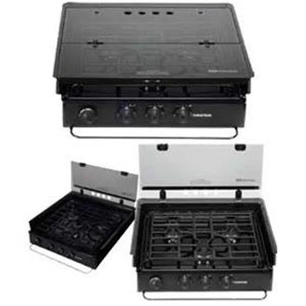 The Suburban 2985A Slide-In bi-fold flush cover is a great cover to have for your RV stove. The flush mount glass cover provides a stylish, sophisticated look with the added benefit of additional counter space when the cook top is not in use.