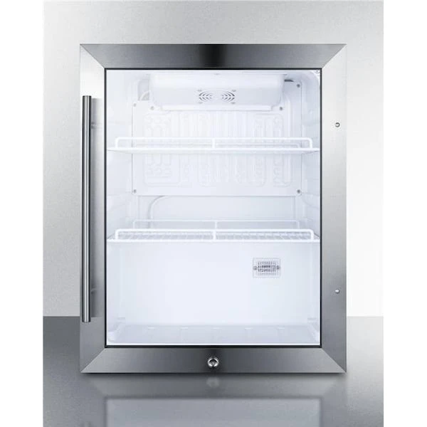 - Stainless steel trimmed glass door provides full product visibility