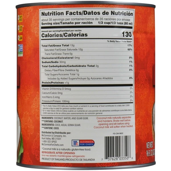 Thai Kitchen Unsweetened Coconut Milk 6lbs Can
