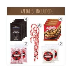 There’s nothing better on a snowy day than hot chocolate This Warm Winter Wishes Hot Chocolate Mix has you covered for just that, with four packets of Ghirardelli Hot Chocolate, two containers of mini marshmallows, two containers or crushed peppermint, six Spangler Peppermint Candy Canes, and four Mrs Field’s Milk chocolate chip cookies Mix in your favorite non dairy milk, top with the crushed peppermint and you have a great afternoon with friends and family